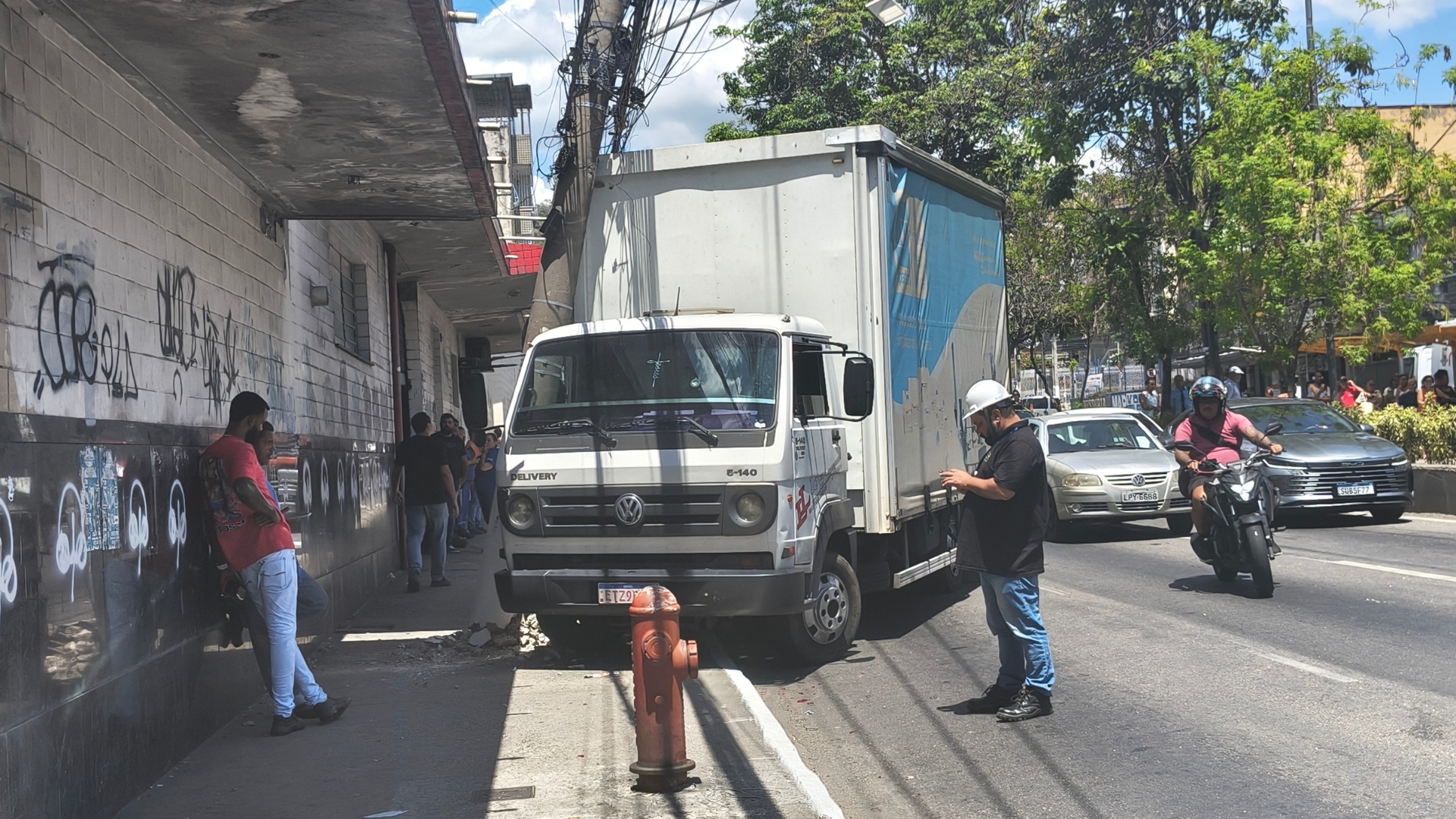 Caminhão perde controle, atinge poste e causa interdição em via movimentada de Niterói