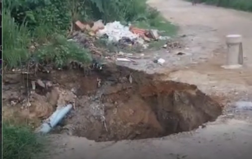 Segundo relatos de moradores, o problema começou com um pequeno buraco no asfalto, que foi aumentando gradualmente com as fortes pancadas de chuva registradas nos últimos dias.