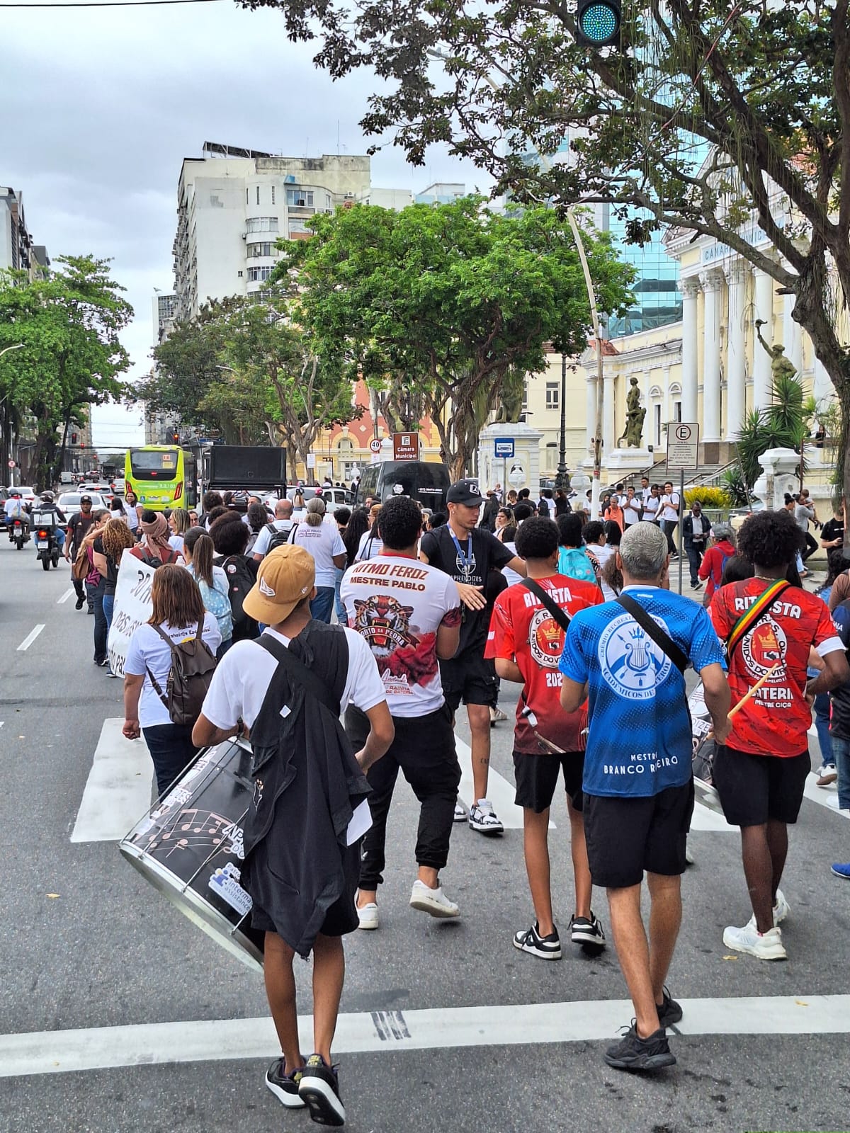 Merendeiras da rede municipal de ensino de Niterói realizaram um protesto na manhã desta quinta-feira (30) pelas ruas da cidade. Com faixas, cartazes e apoio de um carro de som, o grupo caminhou por vias movimentadas, incluindo a Avenida Ernani do Amaral Peixoto, até chegar à porta da prefeitura, onde concentraram as reivindicações.