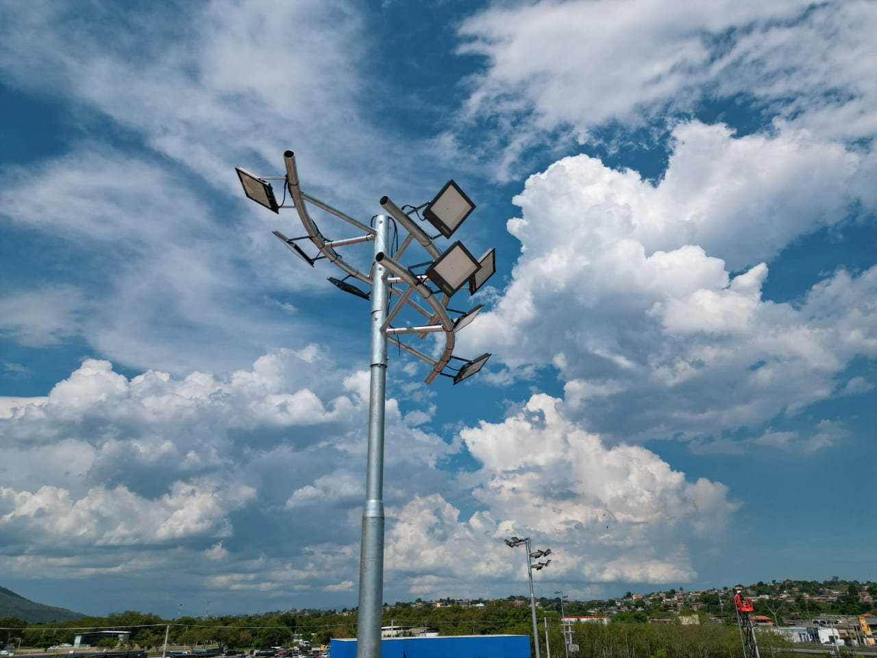 Para assegurar conforto e proteção, o parque terá mais de 200 luminárias de LED, distribuídas em 194 postes, além de 10 câmeras de monitoramento, que funcionarão 24 horas por dia. O projeto inclui ainda 50 projetores de LED de emergência, com potência de 200 watts, que entram em operação em caso de falta de energia, orientando o público pelas rotas de saída com segurança.