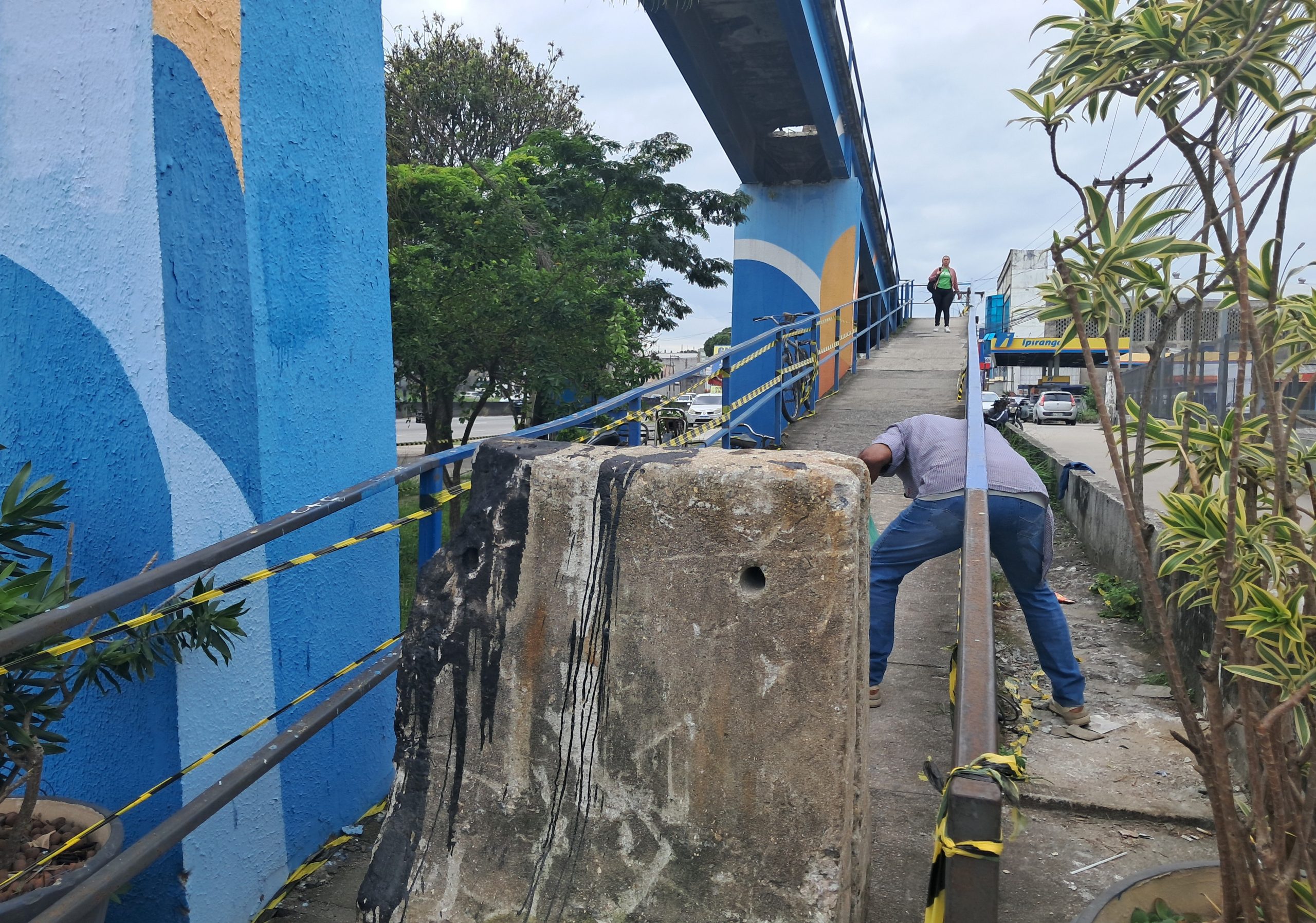 “Já vi moto subindo na passarela várias vezes. Isso acabou com o concreto”, disse Leandro Gomes, morador há mais de 10 anos na região.