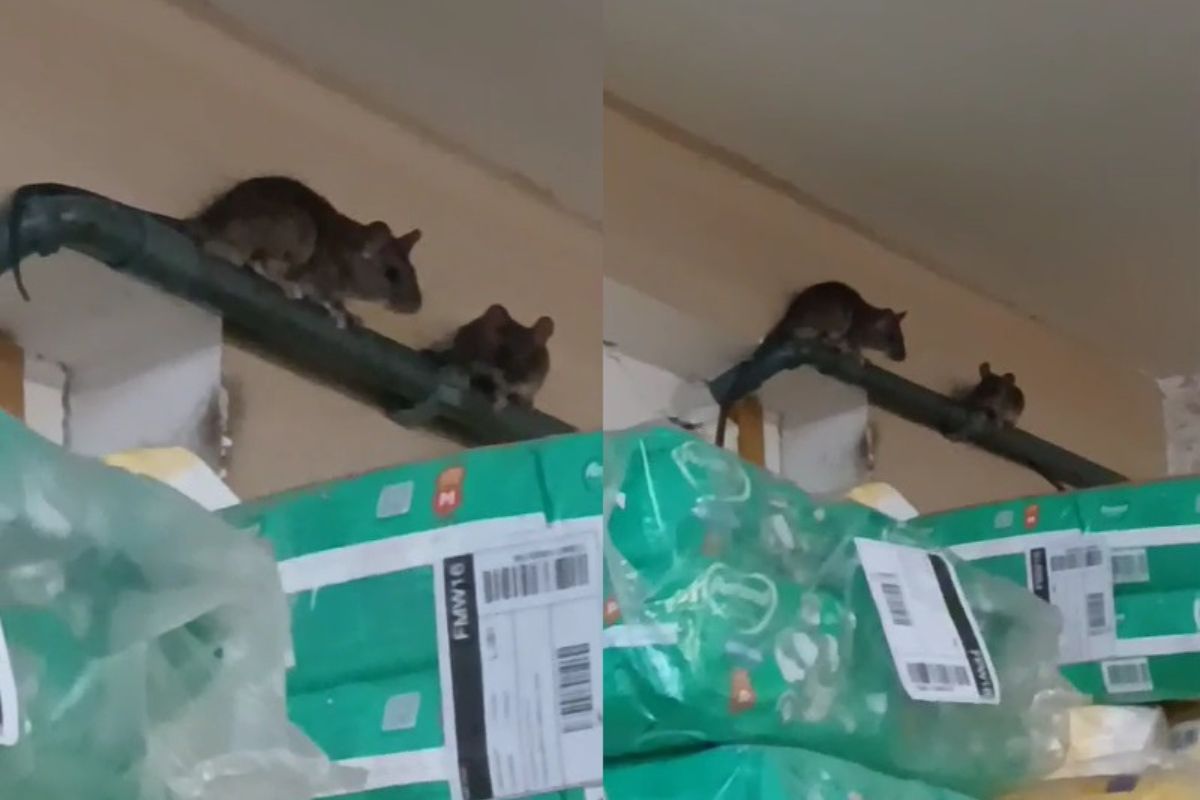 Além dos relatos, um vídeo que circula nas redes sociais, que teria sido gravado na quarta-feira (11), mostra dois roedores caminhando entre mercadorias em uma área que seria o estoque da loja.