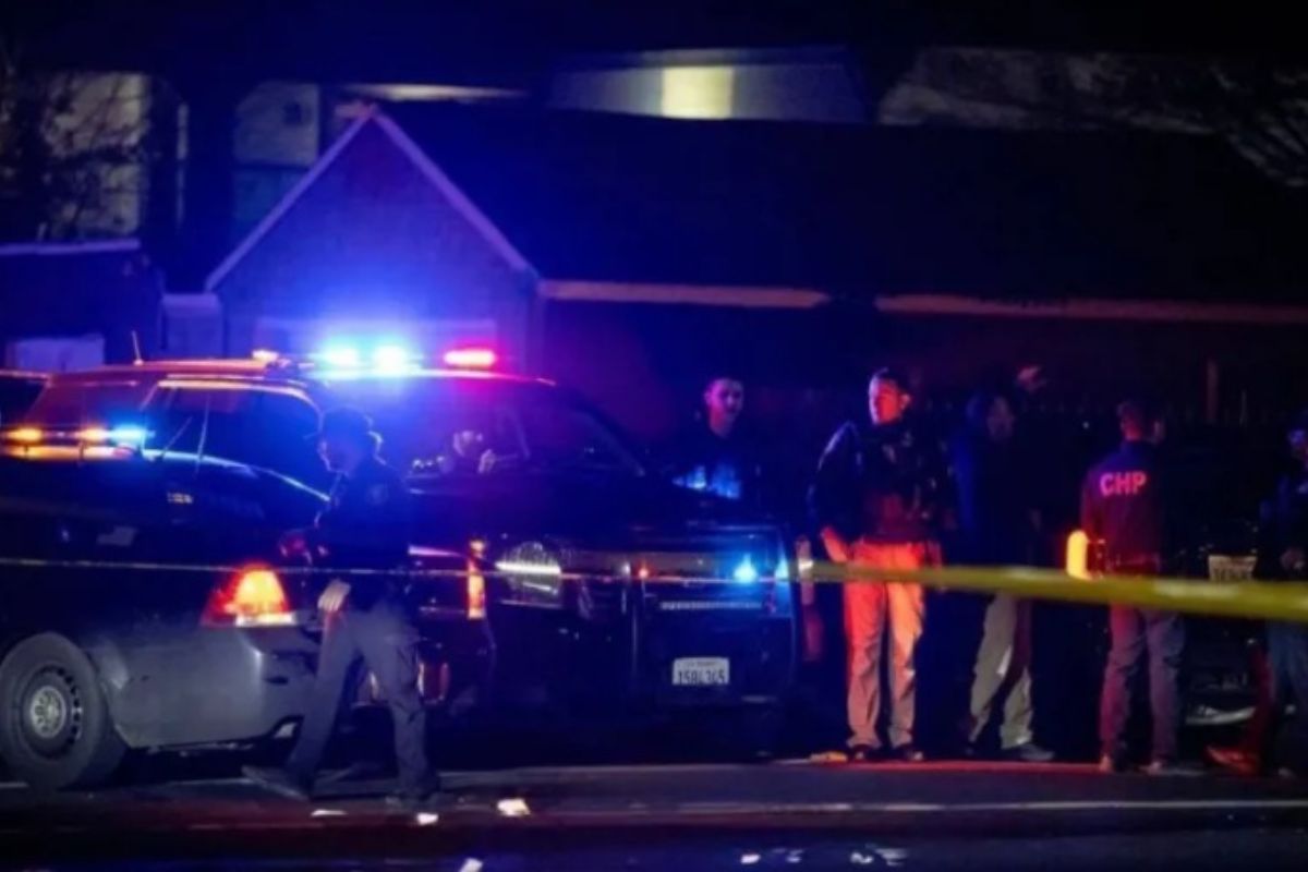 Polícia do Condado de San Joaquin investiga o local do tiroteio em Stockton, onde quatro pessoas morreram e várias ficaram feridas durante uma festa infantil. Foto: Reprodução Redes sociais