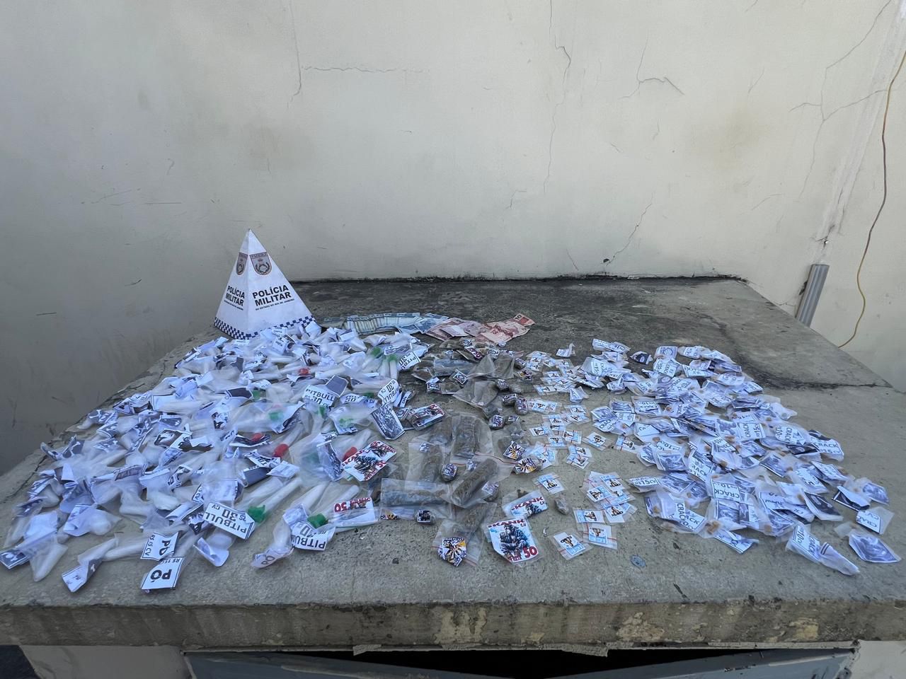 Segundo a polícia, com o adolescente foram encontrados 157 cápsulas de cocaína, 136 pedras de crack e 103 trouxinhas de maconha, além de dinheiro em espécie. O material foi apreendido no momento da abordagem.