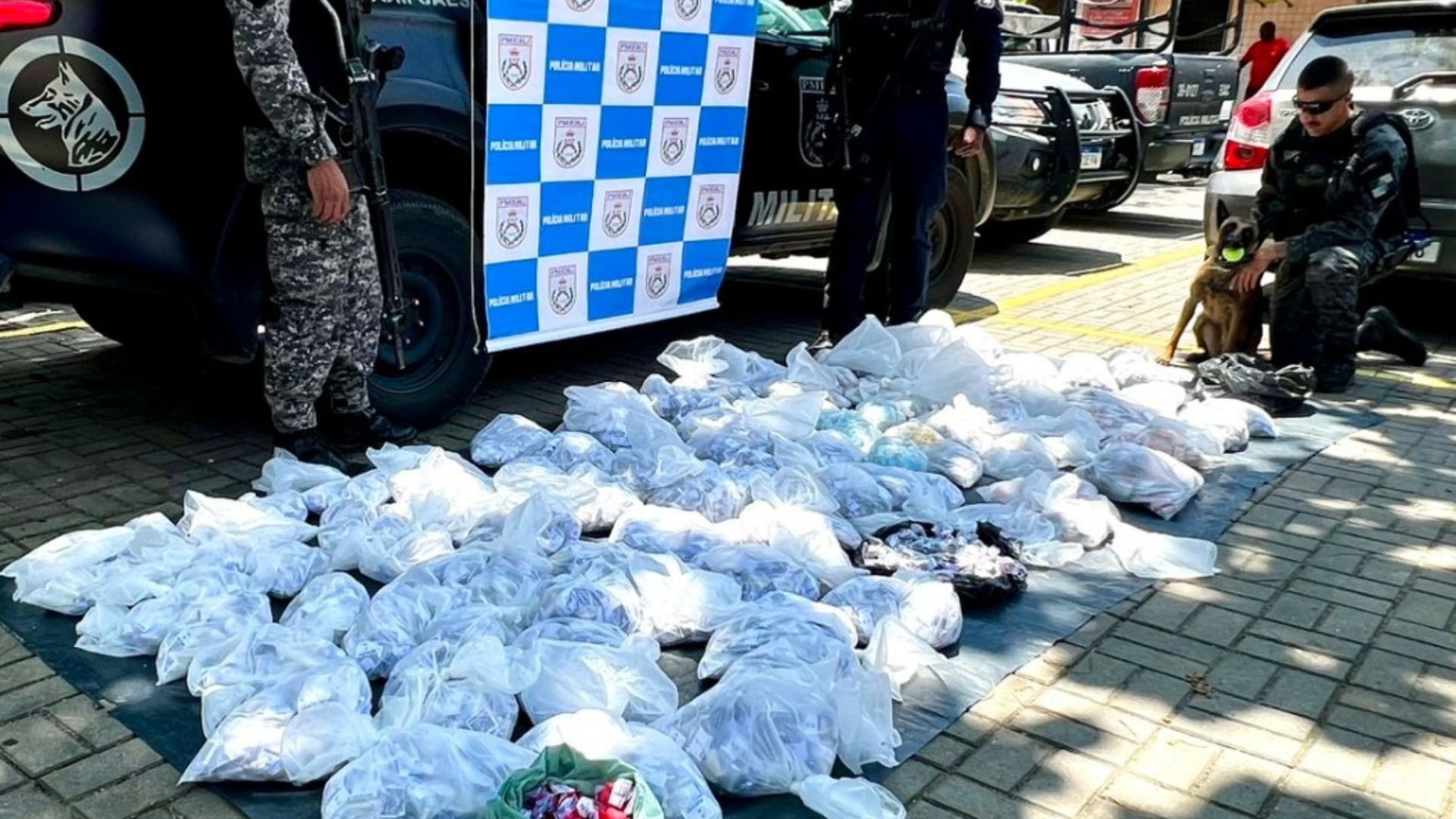 De acordo com informações divulgadas pelo batalhão, os agentes localizaram aproximadamente 8 mil pinos de cocaína e 800 papelotes de skunk, totalizando uma das maiores apreensões recentes na região. O material ilícito foi encontrado durante varreduras realizadas com o apoio dos cães farejadores.