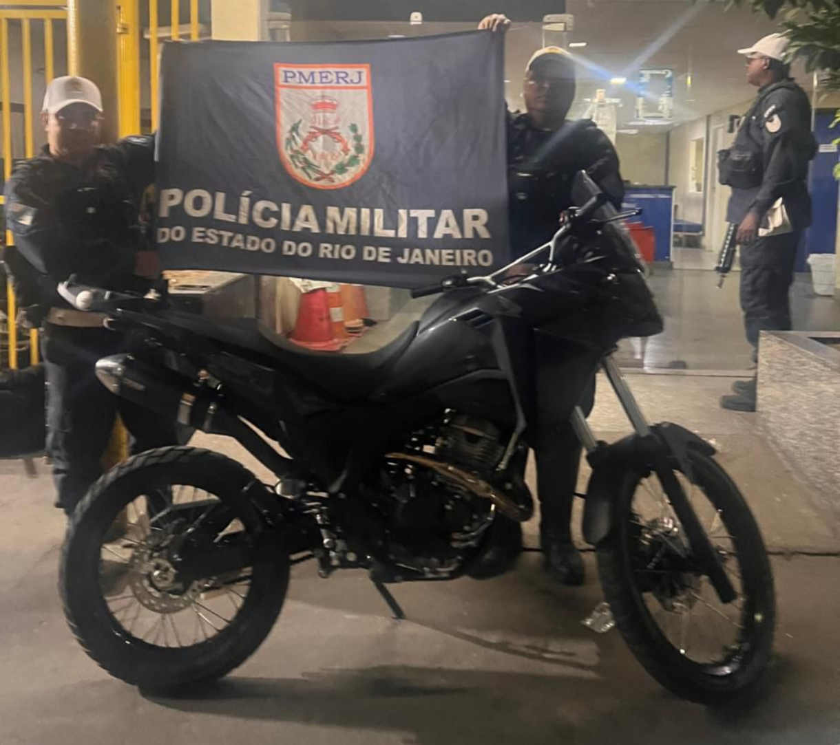 Motocicleta sem placa é apreendida durante fiscalização na RJ-104. Foto: Polícia Militar
