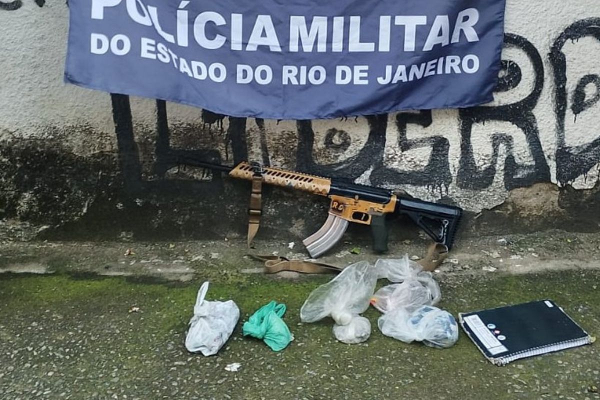 De acordo com a Polícia Militar, a equipe realizava patrulhamento na região quando houve a ação que resultou na detenção de três suspeitos. Durante a operação, os agentes localizaram um fuzil e uma quantidade de drogas, além de dois veículos com registro de roubo.