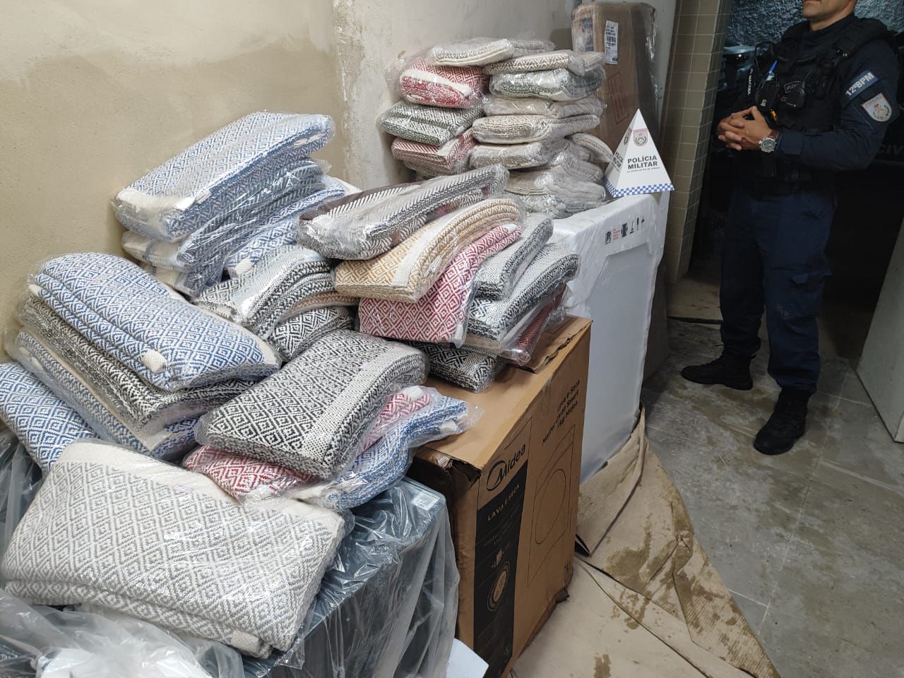 Segundo a PM, nenhum dos itens possuía nota fiscal, o que reforça a suspeita de que a carga seja proveniente de roubo.