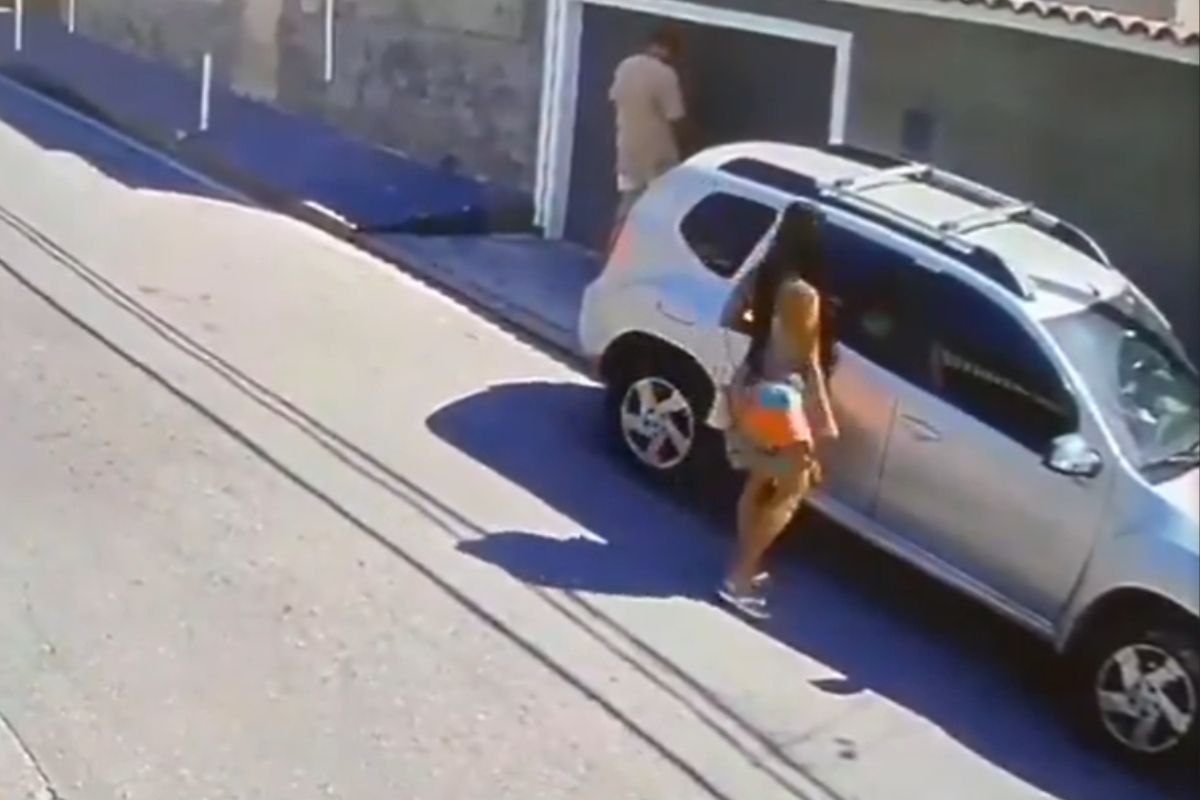 Câmeras de segurança registraram o momento em que um homem desce de um carro preto, abre fogo contra o veículo da vítima e foge em seguida, sem levar nenhum pertence.