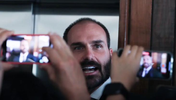 O parlamentar é filho do ex-presidente Jair Bolsonaro e está sendo investigado pelo Supremo Tribunal Federal (STF) por supostamente atuar junto ao governo dos EUA para pressionar ministros da Corte e interferir em ações penais contra aliados.