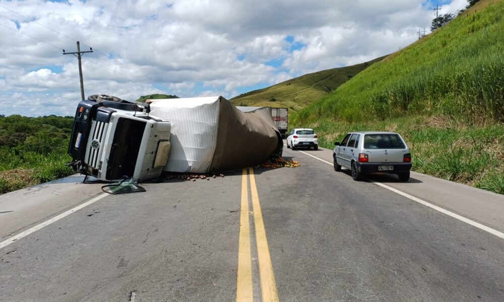 Um caminhão tombou por volta das 12h desta terça-feira (24) na , na altura do município de , no Sul Fluminense. O acidente provocou interdição total...