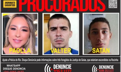 O Disque Denúncia do Rio de Janeiro divulgou nesta quarta-feira (11) um cartaz com fotos e informações de três criminosos foragidos da Justiça do Estado de...