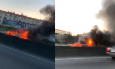 Um carro em chamas na RJ-104 provocou interdição parcial da pista sentido Niterói no fim da tarde deste domingo (26),...
