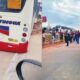 Ônibus encalhado na Dutra paralisa trânsito em Nova Iguaçu