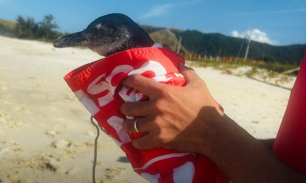 Pinguim debilitado é resgatado por pescadores e guarda-vidas em Maricá